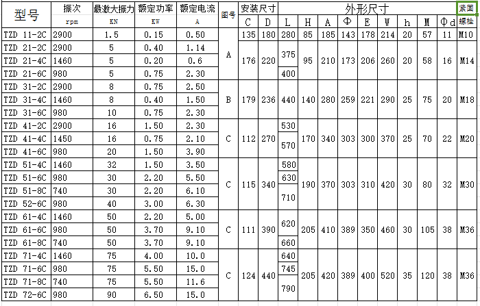 TZD振動電機為三相380V 50HZ異步電動機,封閉自冷式、可做水平、傾斜安裝。TZD振動電機在連續(xù)工作時,周圍空氣中不得含有腐蝕性及爆炸性氣體,環(huán)境溫度不得超過40度。將振動電機安裝在振動機械上時,振動電機的底腳螺栓必須緊固,每個螺母下必須加平、彈墊圈,振動電機運轉(zhuǎn)初期,由于螺栓、螺母、底座平面間的磨合,會降低緊固力,出現(xiàn)小的松動,故運轉(zhuǎn)初期應(yīng)將電機的底腳螺栓多次擰緊,開始時每天緊固一次,兩周后每周檢查緊固一次。